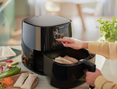Digital display with 7 preset cooking programs – frozen fries, meat, fish, chicken drumsticks, keep warm and much more.